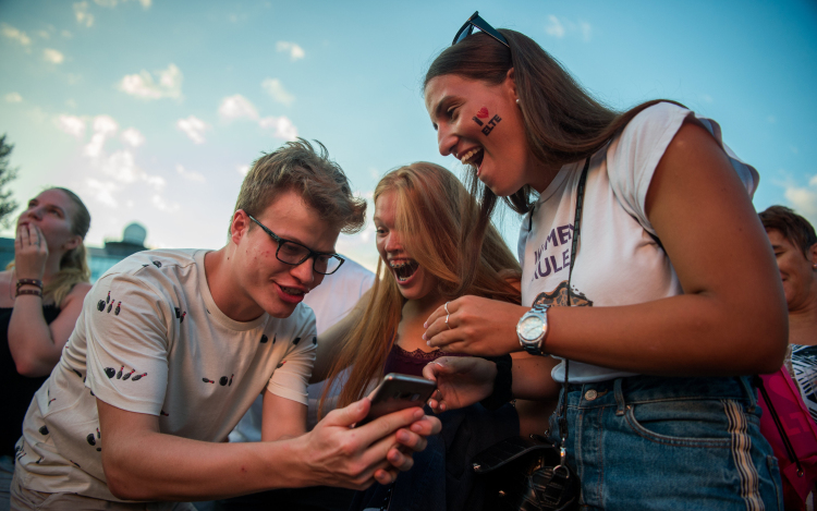 A Pont Ott Partin fiatalok százai beszélgettek, iszogattak az eredményekre várva, amelyeket a szimbolikus gombnyomás után kivetítőről olvashattak le.