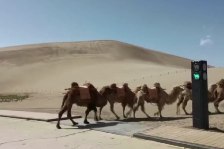 A világ első, tevéknek szánt közlekedési lámpáját helyezték üzembe a hétvégén Kína északi részén.