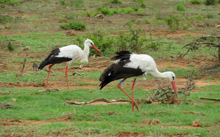 A közzétett képen látható fehér gólyákat két napja fényképezték le a Dél-afrikai Köztársaság egyik nemzeti parkjában, egy elefántok által használt ivóhely közelében.