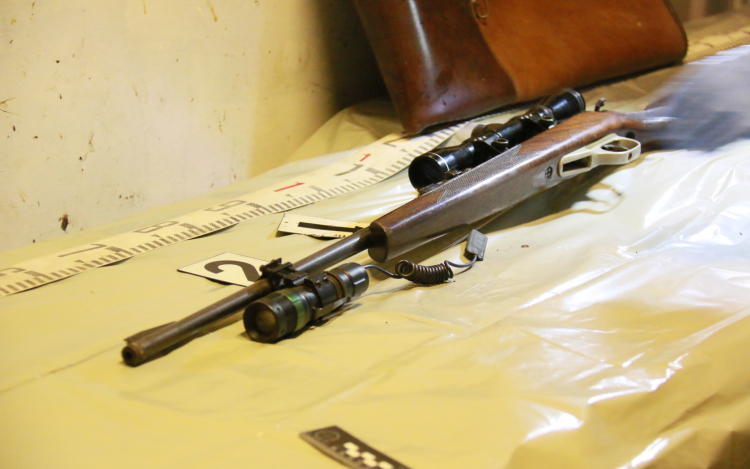 A több helyszínen tartott kutatások során lefoglalt fegyvereket és lőszereket jelenleg szakértők vizsgálják.